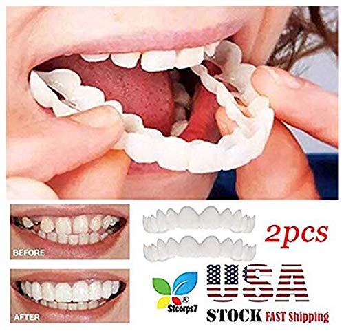 Veneers Snap In Teeth Stcorps7 Braces Veneers Dentures Fake Teeth Smile Snap Instant And Confident On Smile 2pcs Comfort Fit Flex Cosmetic Teeth Denture Teeth Top Cosmetic Veneer 2pcs Amazon In Health